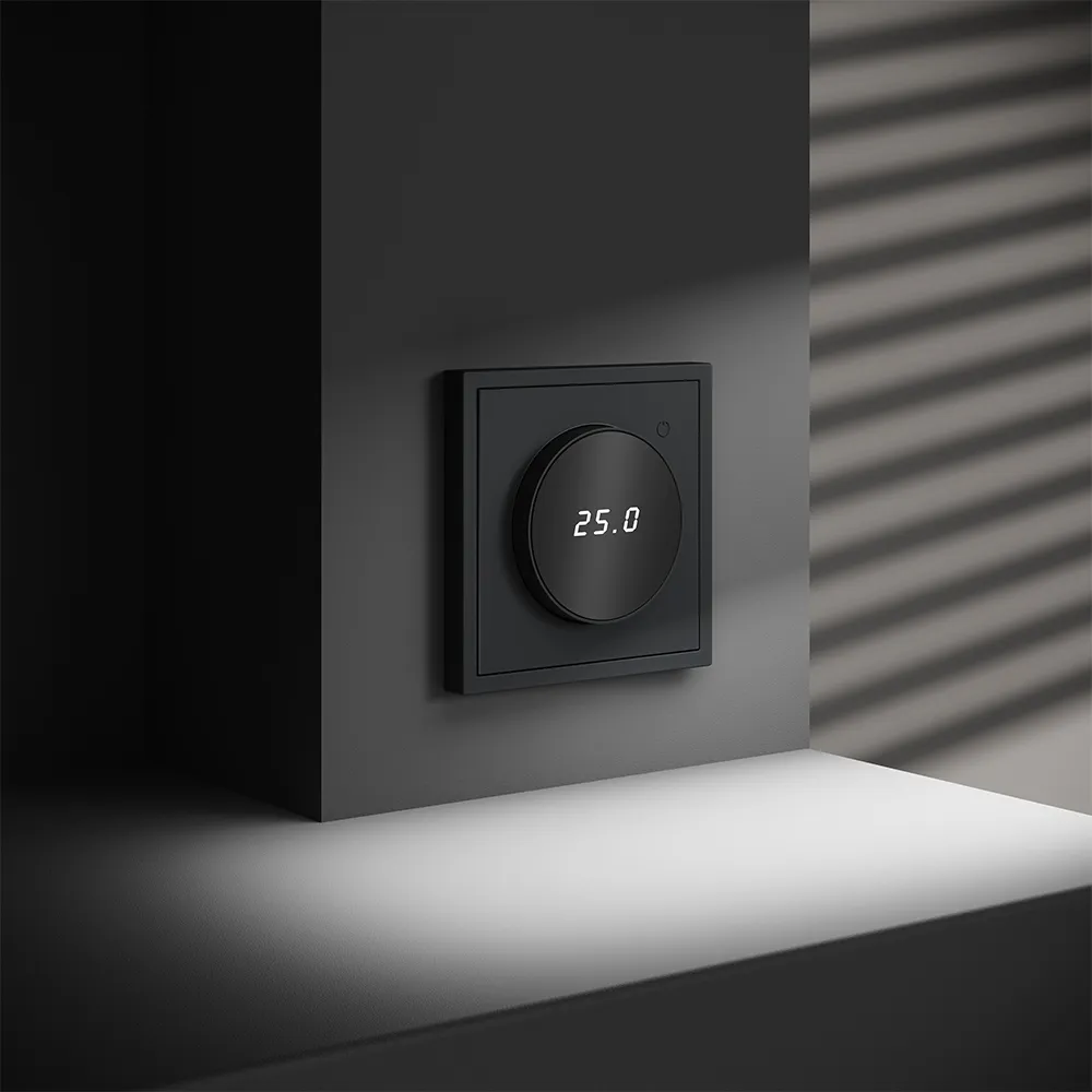 Терморегулятор предназначен для работы с электрическими тёплыми полами различных типов и рассчитан на нагрузку до 3500 Вт. Устройство оснащено дисплеем, на котором отображается температура поверхности пола, обеспечивая удобный контроль системы обогрева. Устройства оснащены светодиодной индикацией режима и дисплеем, на котором отображается температура поверхности пола. Красный индикатор — «подача питания на нагревательный кабель (идет процесс нагрева)», отсутствие индикации — «заданная температура достигнута». В течение 15 минут после нагрева терморегулятор переходит в интеллектуальный «спящий режим», уменьшая яркость подсветки цифр и сокращая энергопотребление. Регулировка осуществляется вращением панели управления.