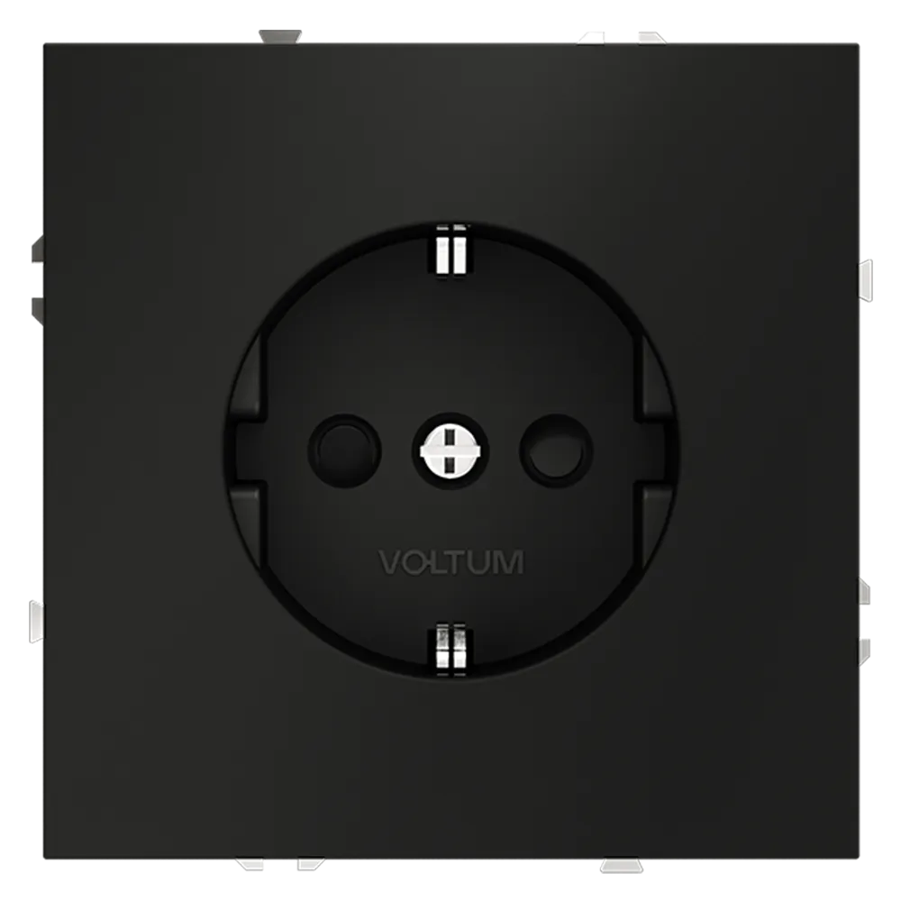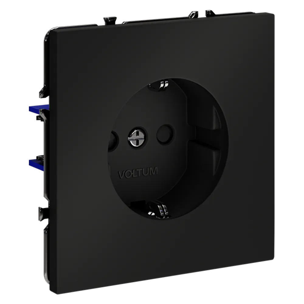 Розетка встраиваемая VOLTUM S70 с заземлением и защитными шторками 16А (черный матовый)